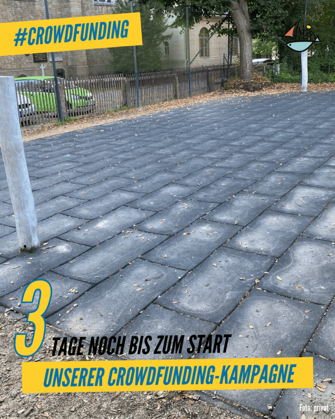 Der Countdown läuft! Nur noch 3 Tage bis zum Start unserer Crowdfunding-Kampagne für „Sicher bolzen – neuer Fallschutzbelag für den Schulhof!