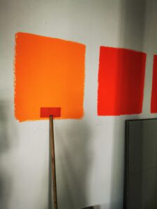 Es wird bemustert was das Zeug hält. Die Fliesen in den Sanitärräumen sind schon seit einigen Wochen verlegt, aber jetzt zieht auch Farbe in die anderen Räume ein. Und… apropos einziehen: Es wird auch immer gemütlicher! Die Deckenbeleuchtung ist installiert, die Heizkörper wurden angebaut und, ganz wichtig, in den Zwischentüren ist jetzt das Glas drin. Da zieht es gleich gar nicht mehr so! Der Herbst kann also noch ein paar Stufen nach oben klettern!