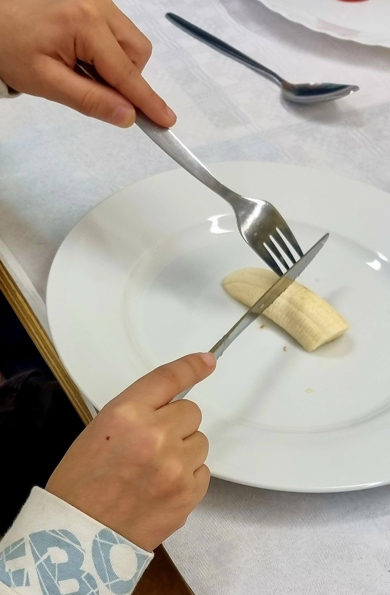 Große Begeisterung löste auch das Training der Tischmanieren aus: An einer festlich gedeckten Tafel übten die Kinder den Umgang mit Messer und Gabel, das gemeinsame Essen und kleine Gesten der Höflichkeit.